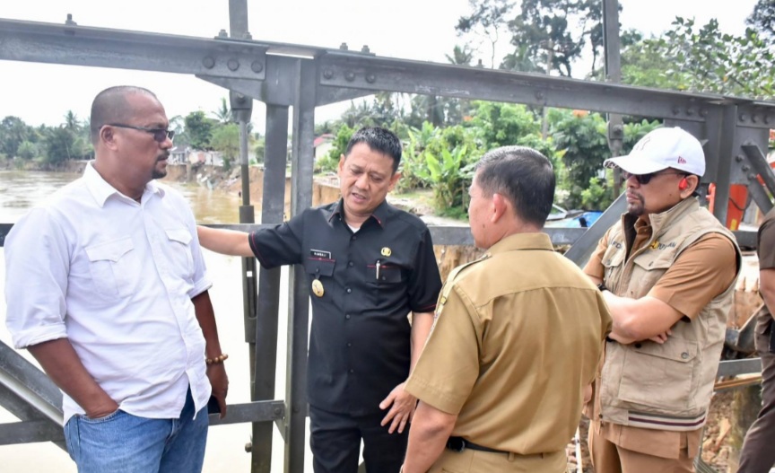 KAMPAR, Buletinsatu.com - Pj. Bupati Kampar Hambali SE, MH meninjau langsung kondisi jembatan gantung penyeberangan yang berada di Desa Gobah Kecamatan Tambang pada Selasa (16/1).