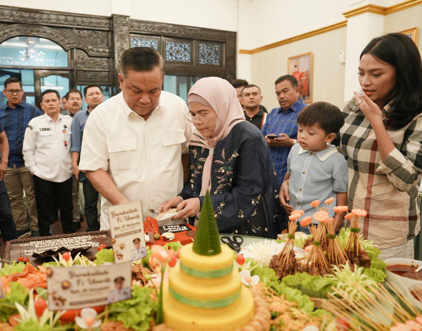 PEKANBARU -- Wakil Gubernur Riau (Wagubri), SF Hariyanto mendapat suprise dari keluarga dan kerabat serta pegawai di Hari Ulang Tahunnya ke-60, di Kediaman Dinas Wagubri, Jalan Sisingamangaraja Pekanbaru, Rabu (30/4/2025).