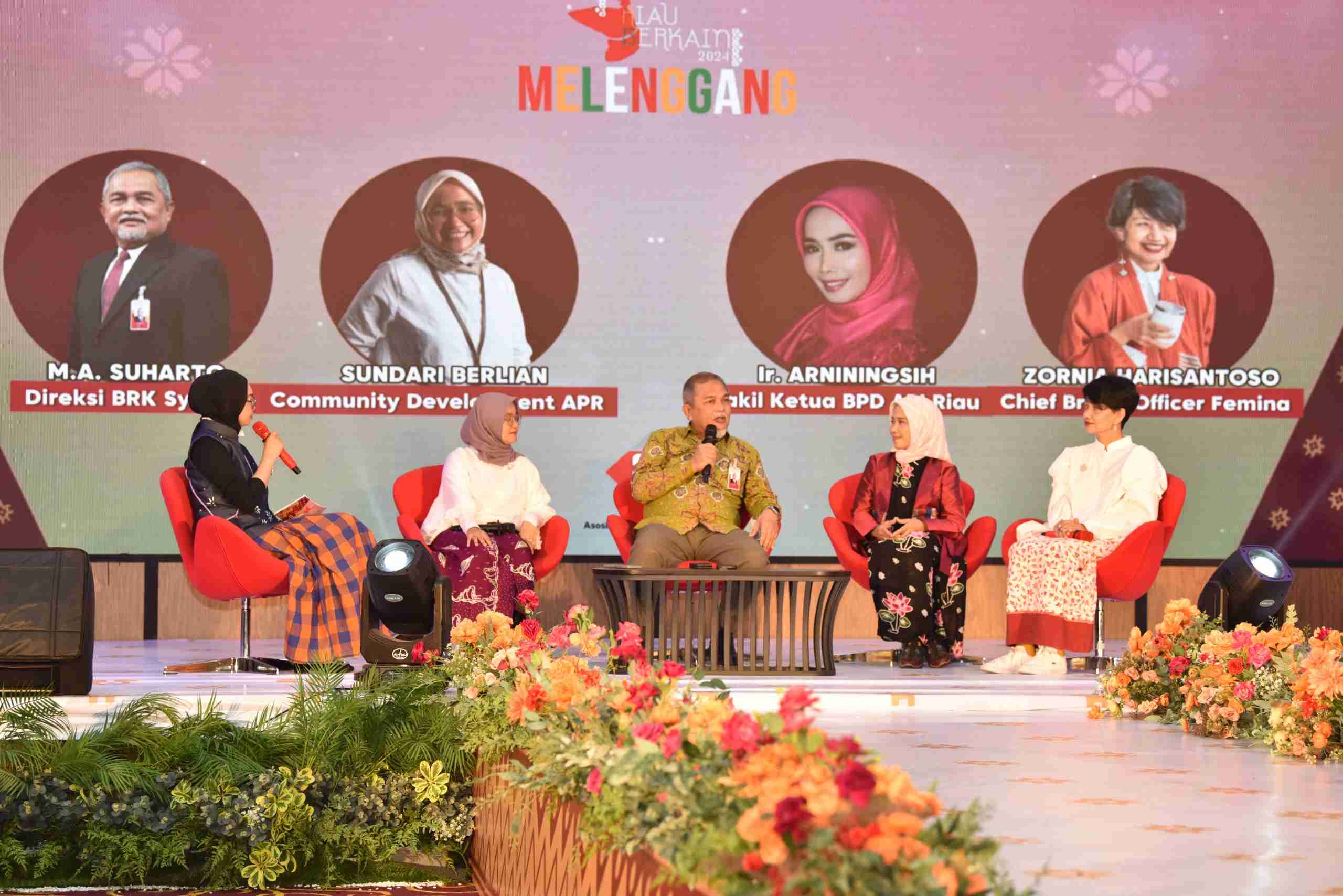 Talk Show dengan tema Akselerasi Wastra Riau Berkelanjutan menghadirkan tokoh-tokoh penting dalam dunia pertekstilan. Selain Direktur Dana dan Jasa BRK Syariah MA Suharto, tokoh lainnya adalah Community Development APR Sundari Berlian, Wakil Ketua BPD API Riau Ir Arningsih dan Chief Brand Officer Femina, Zornia Harisantoso. Keempat tokoh ini menjelaskan bagaimana perkembangan dunia pertekstilan di Riau yang kini semakin populer, dengan potensi yang cukup bagus dan perlu tahu bagaimana strategi yang tepat untuk menjalankan bisnis fashion ini.