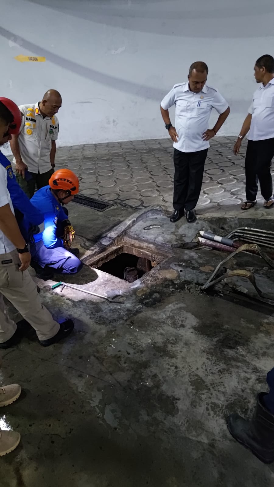 Ular berjenis Sanca Piton ini tampak di area Basement bangunan tinggi kantor pemerintahan tersebut.