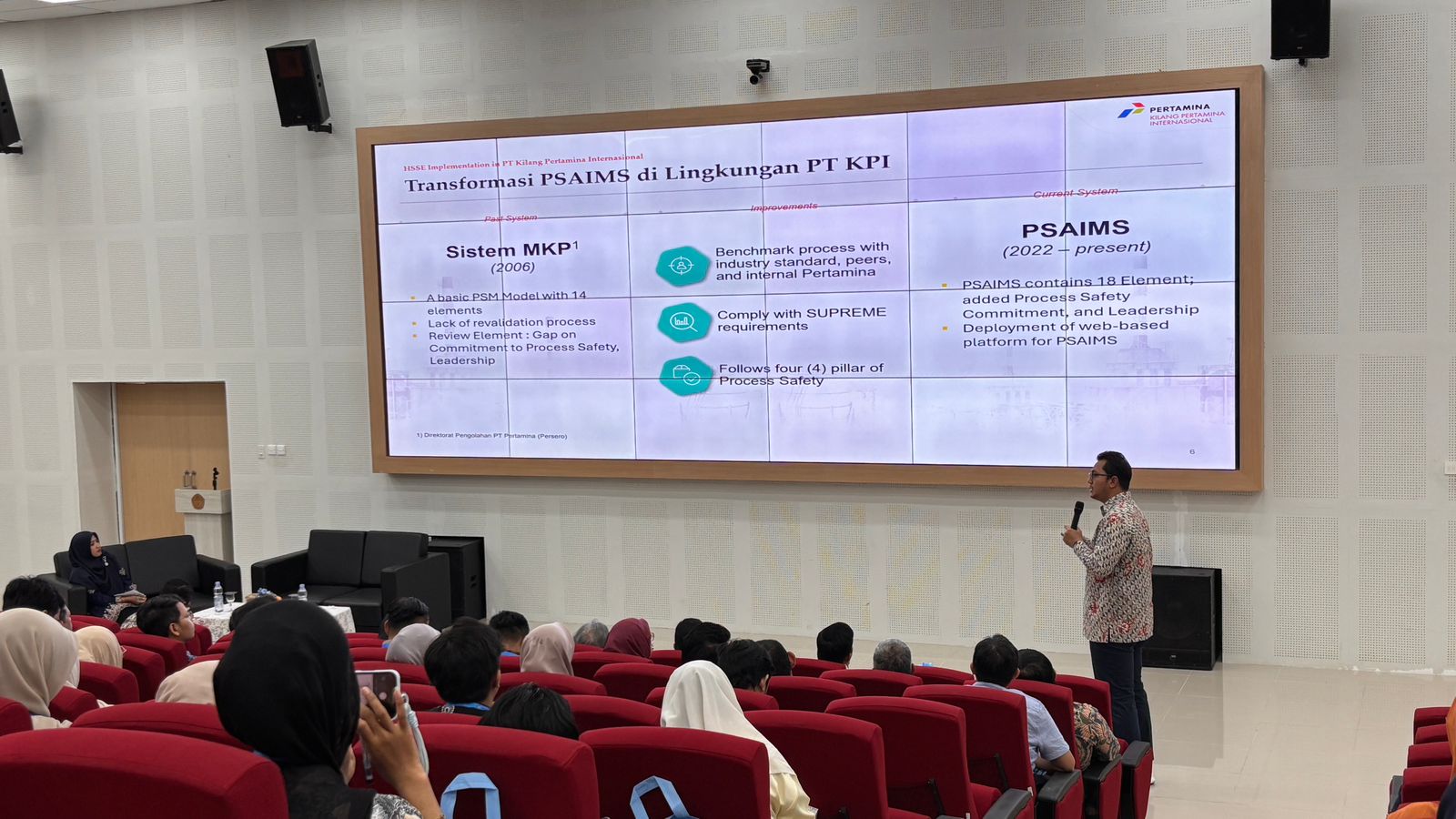 Upaya tersebut diperkuat dengan implementasi 18 elemen dari program Process Safety and Asset Integrity Management System (PSAIM) sebagai bagian dari pedoman pengelolaan pengendalian risiko diselurh lini bisnis di Pertamina.